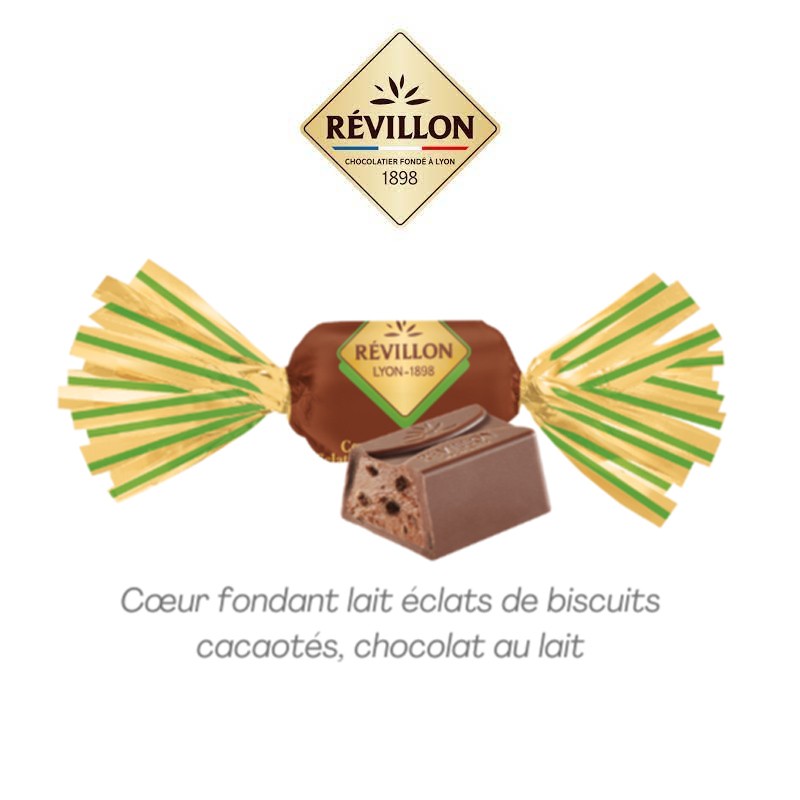 Composition: Praliné 26% (sucre, AMANDES, NOISETTES), sucre, beurre de cacao, pâte de cacao*, LAIT entier en poudre, LAIT écrémé en poudre, éclats de biscuits 4% (sucre, farine de BLE, cacao maigre en poudre, AMANDES en poudre, amidon de BLE, huile de tournesol, blanc d'OEUFS en poudre, poudre à lever : bicarbonate de sodium, sel), beurre concentré (LAIT), émulsifiants : lécithines (SOJA), cacao maigre en poudre, lactose (LAIT), lactosérum en poudre (LAIT), NOISETTES partiellement déshuilées, arôme naturel de vanille.
