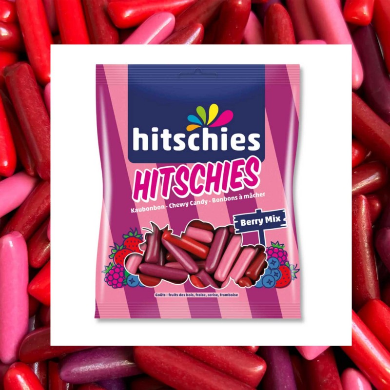 Bâtonnets de pâte à mâcher au délicieux goût de fruits rouges, enrobés d'une coque craquante.