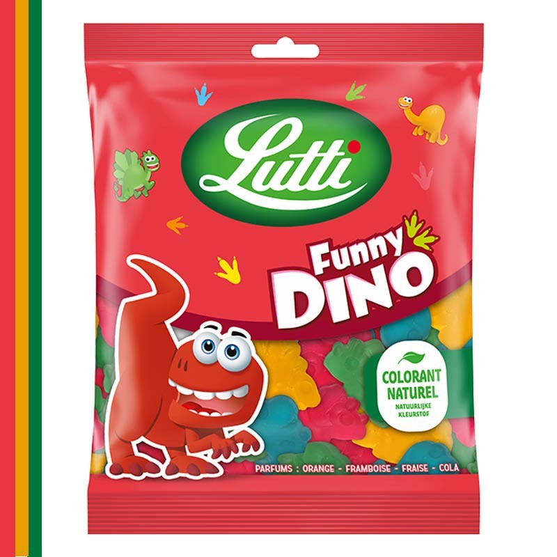 Bonbons gélifiés aux formes ludiques de dinosaures avec des goûts irrésistibles : framboise, fraise, cola et orange.
