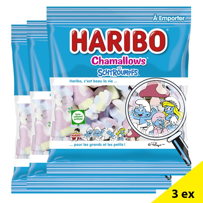 Craquez pour les Chamallows Schtroumpfs Haribo, de délicieux bonbons guimauve à l’effigie des célèbres petits personnages bleus ! Leur texture ultra moelleuse et leur goût doux et vanillé font fondre de plaisir petits et grands gourmands.