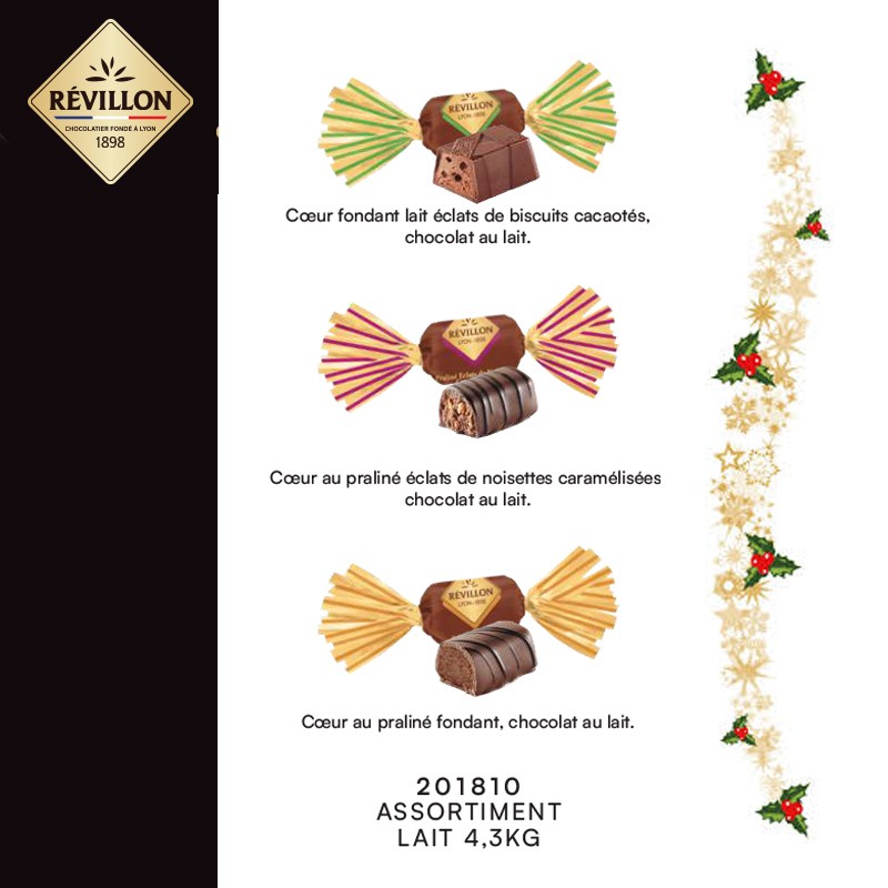 Passez de joyeuses fêtes en dégustant cet assortiment de papillotes au 3 chocolats au lait Révillon
